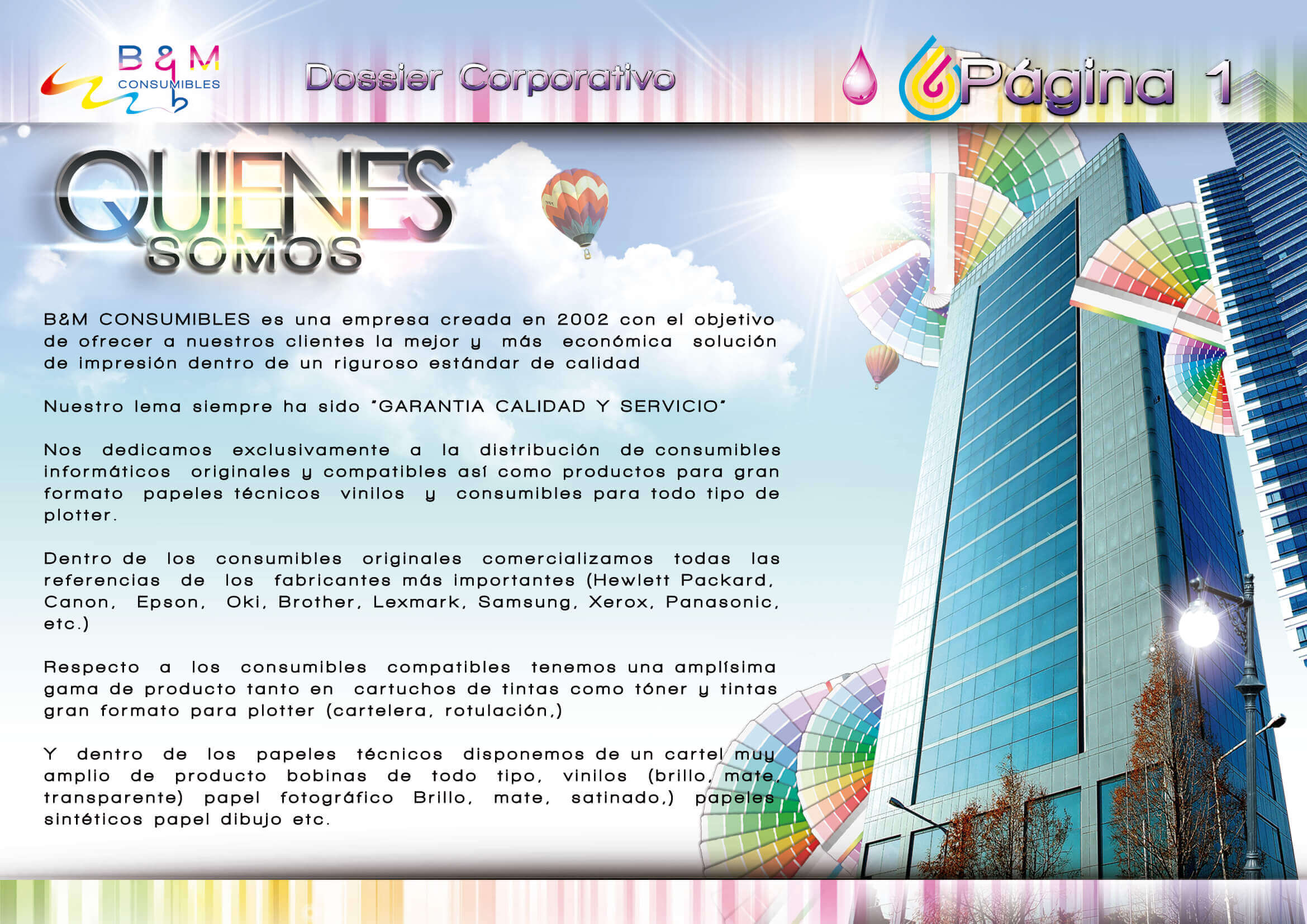 En B&M Consumibles, empresa fundada en 2002 en Valencia, nos especializamos en ofrecer a nuestros clientes las mejores soluciones de impresión, aunando calidad, fiabilidad y precios competitivos. Desde nuestros inicios, nuestro objetivo ha sido proporcionar cartuchos de tóner, tintas originales y compatibles, así como una amplia gama de consumibles informáticos y materiales para impresión profesional, siempre garantizando un riguroso estándar de calidad.